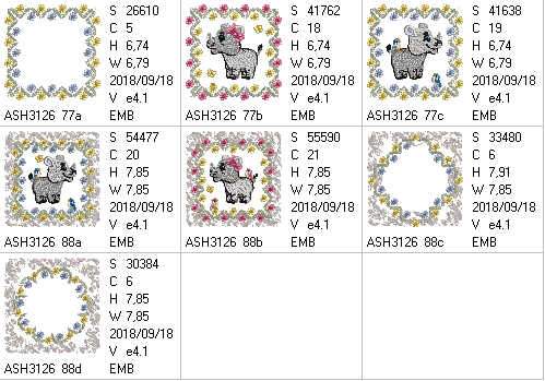 - 4*4 Hoop x 7 (stitch count 1787 - 14,209)