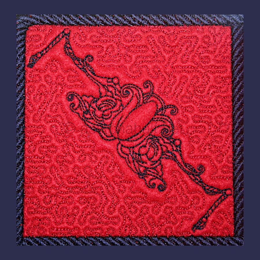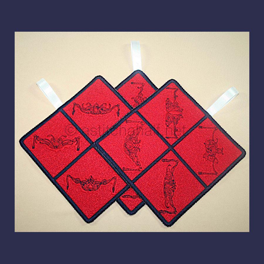 Trapunto designs, also called raised embroidery. Create beautiful projects with these designs. We made tea tray cloths, pot holders, book covers, coasters, place mats etc.