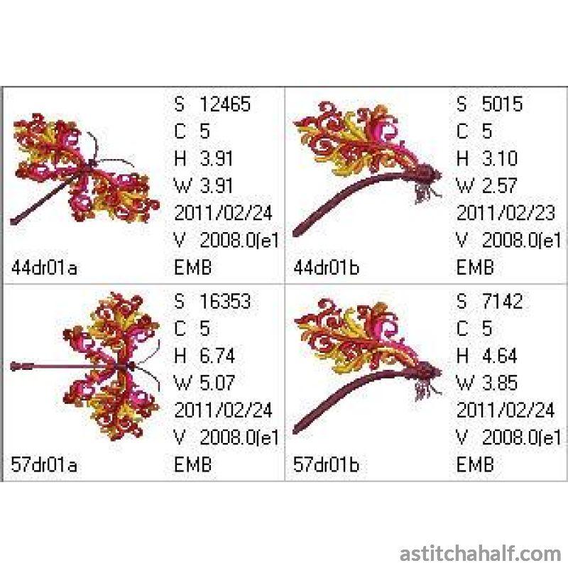 - 2 Unique Dragonfly Designs - (1 front view and 1 side view) for the 4*4 hoop