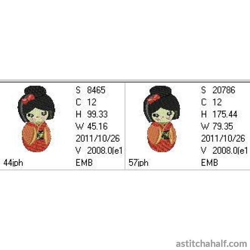 The Kokeshi dolls are traditionally hand crafted and painted wooden dolls originating as far back as possibly 1600 - 1868. Make a colorful Quilted blanket or decorate a bag or embroider on a pocket.