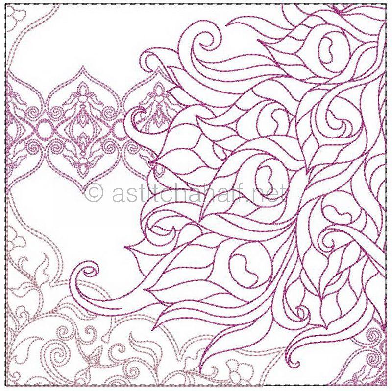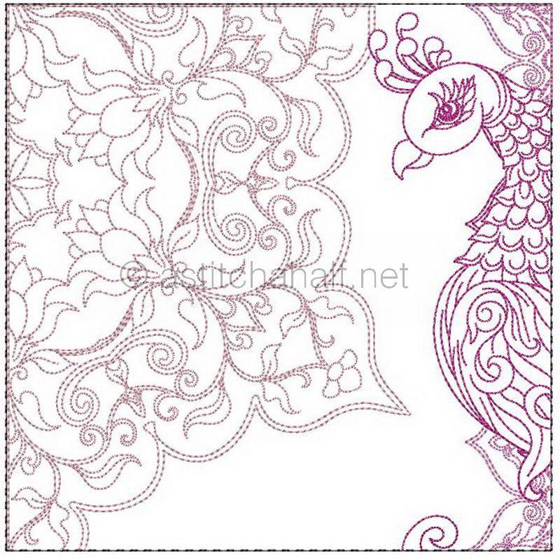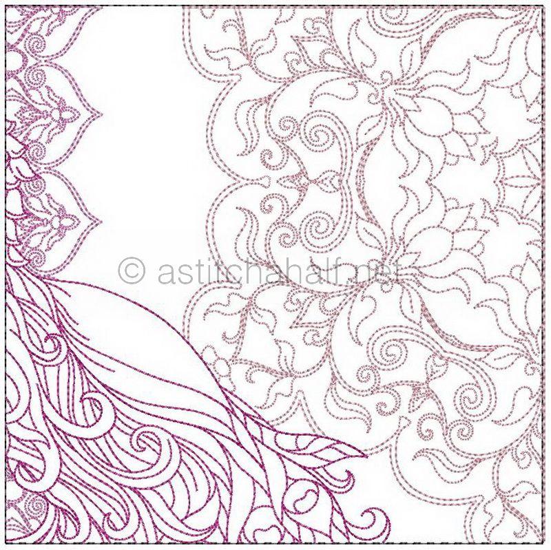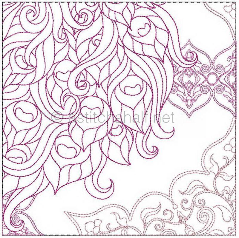 This Seamless pattern is a Repeating pattern, as shown in the Quilt we made (22" when finished using four 9" designs). You can make the quilt big or small, by simply stitching out more blocks in the hoop size you prefer, because the pattern joins beautifully with the pattern in the next block and the next block and the next block...Or stitch out only 1 Block to create a Beautiful Quilted Pillow.