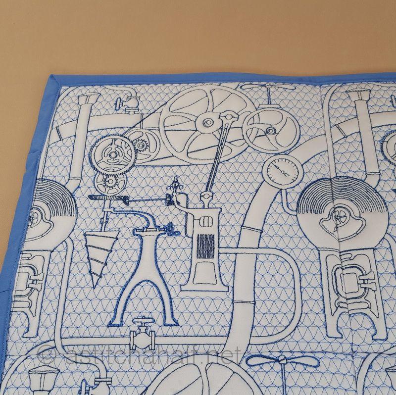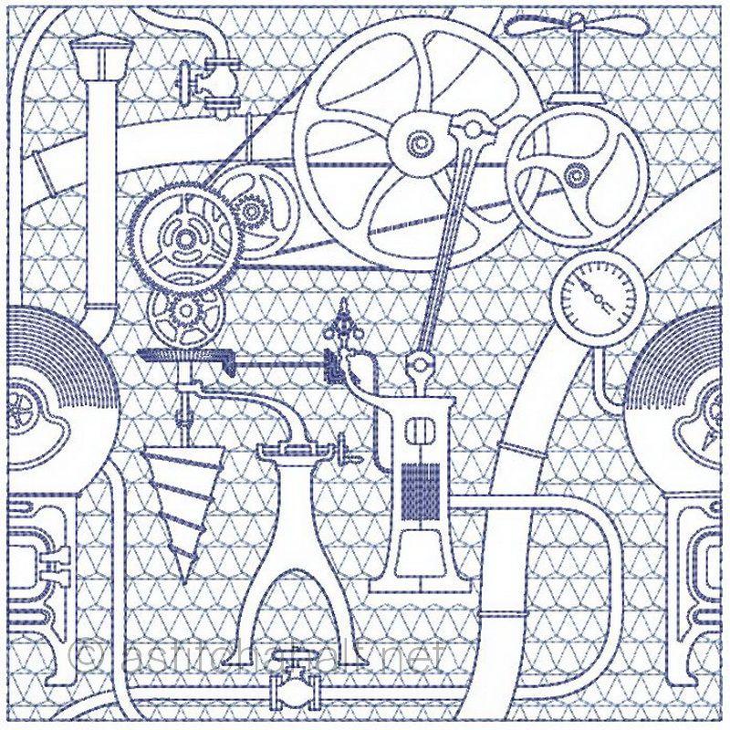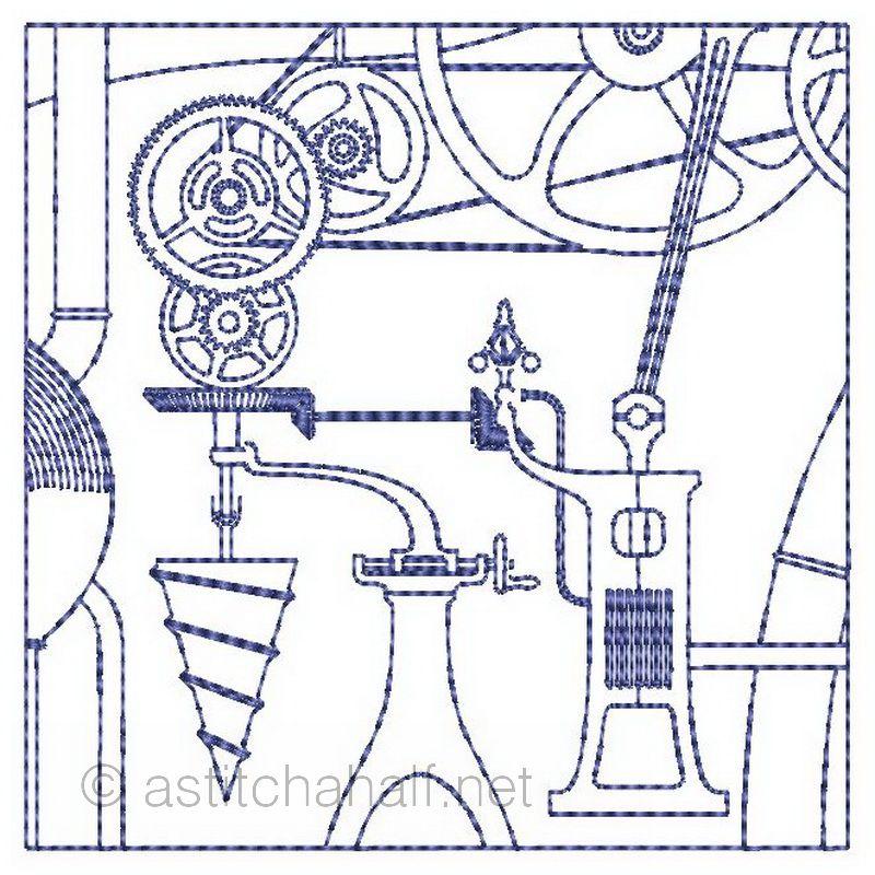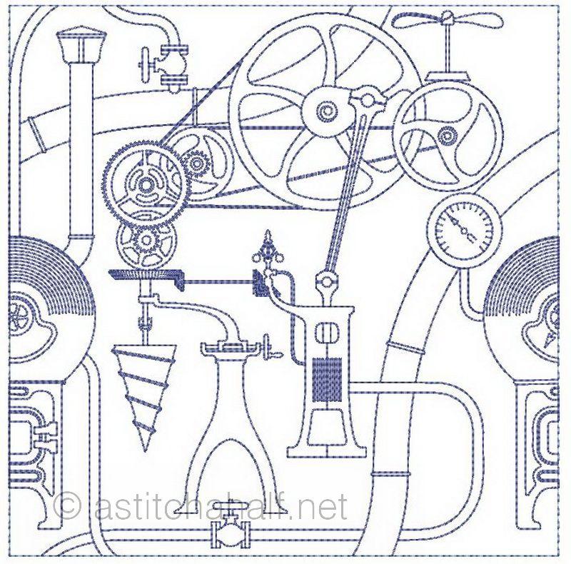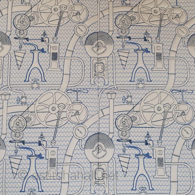 "Steampunk" is technologies that were new or important to the Victorians, such as steam power, clockwork or electricity. So we might say we use "sort of Victorian-industrial" designs to create beautiful patterns on our seamless quilt.