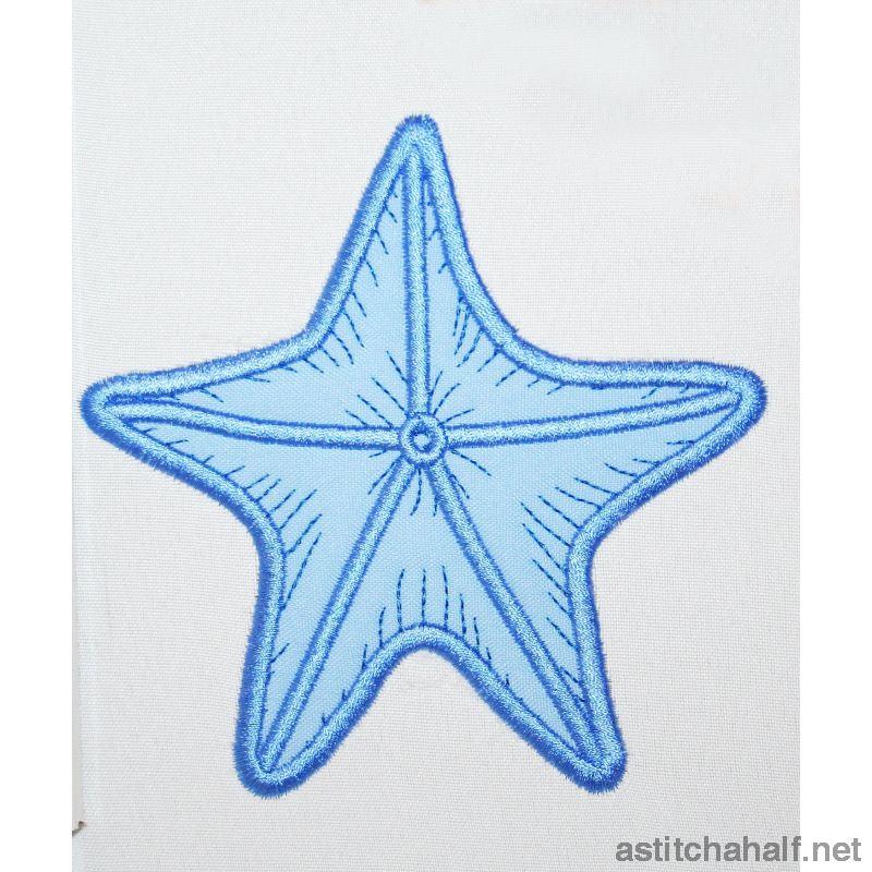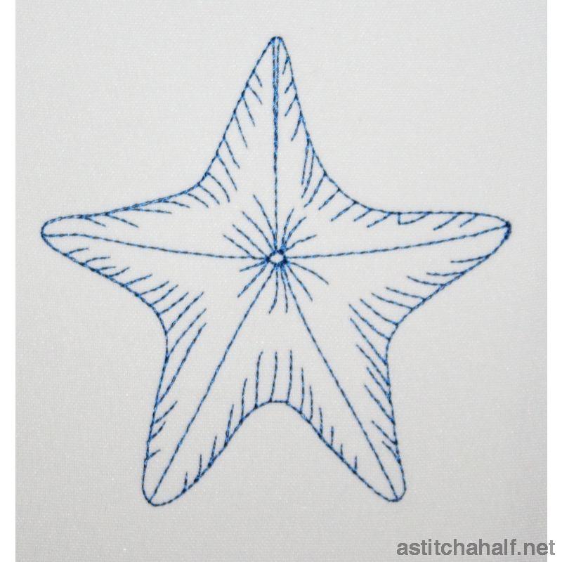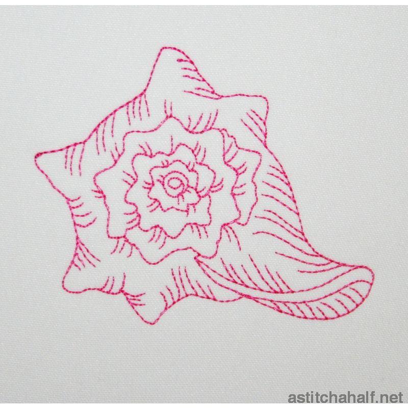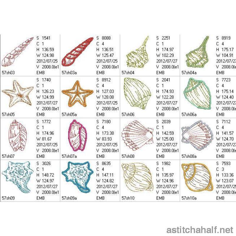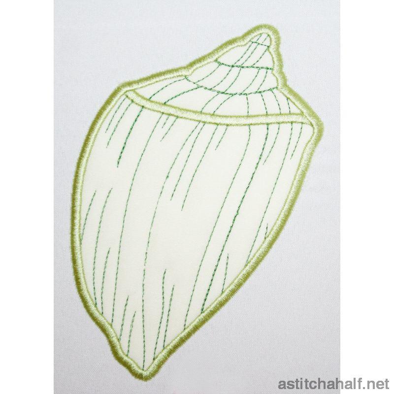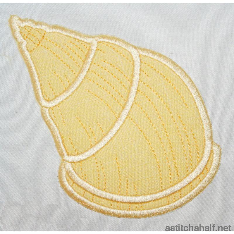 Sea shells, beach, sun and summer. What more do we need for a wonderful relaxing vacation. Embroider a running stitch design as a background design and follow with the creative applique design. Great for a beach towel, tote bag, romper, summer dress or beach theme quilted blanket.