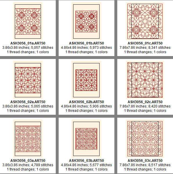 4*4 hoop designs x 11 (stitch count = 2296 - 8956)