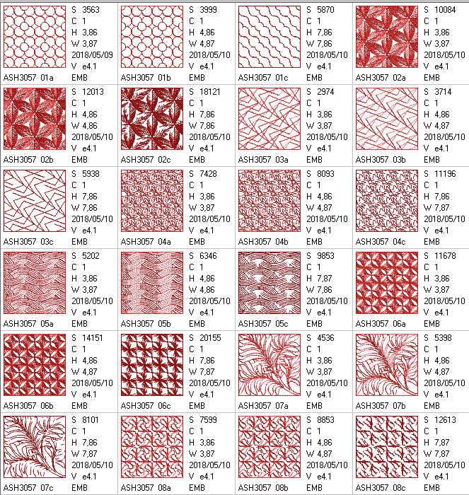 8*8 hoop designs x 11 (stitch count = 4375 - 20,155)