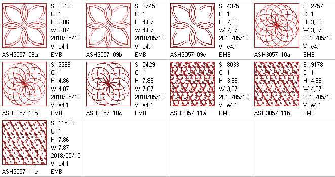 4*4 hoop designs x 11 (stitch count = 2219 - 11,678)