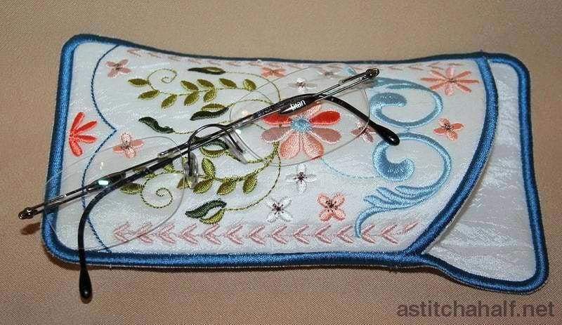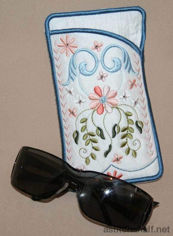 Signature Eyeglass Case is the ideal, chic eyeglass case that fits easily into your purse, tote bag or just in your pocket. It easily fits the normal sunglasses or eyeglasses. This SUPER EASY fun project is completely done ALL IN THE HOOP!