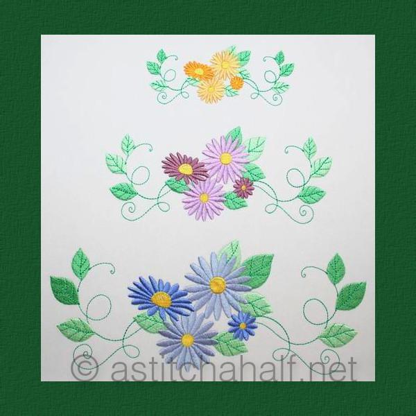 Embroider this border with beautiful Daisies on the edge of a table cloth, pillow case or duvet cover and you`ll have a touch of elegance