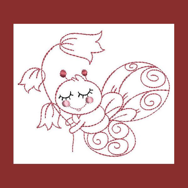 Cute little bugs that sleep after a busy day. The main stitch used in redwork is back stitch or outline stitching. It is also called "quick stitch" because you can create a simple redwork embroidery design in very little time. You can make tea tray cloths, pot holders, book covers, coasters, placemats and so much more.