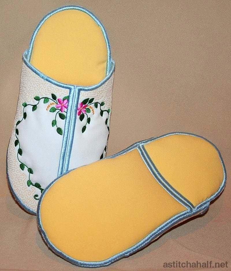 These slippers are available in 4 x adult sizes (5, 7, 9, 11) and are decorated with a romantic floral heart.