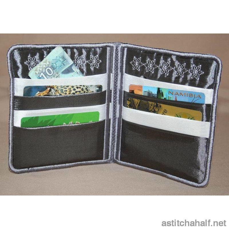 An All in the Hoop Project. Keep your VISA cards, coins and dollars in this stylish wallet.
