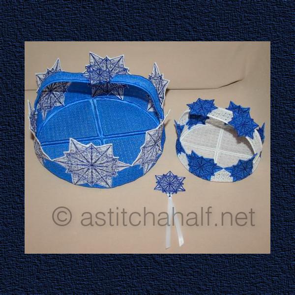 Snowflake Freestanding Lace Baskets in two sizes. Use these dainty baskets for treats at any festive occasion. Just imagine adding flowers, napkins and more to decorate your table. And use the snowflakes on their own as well.
