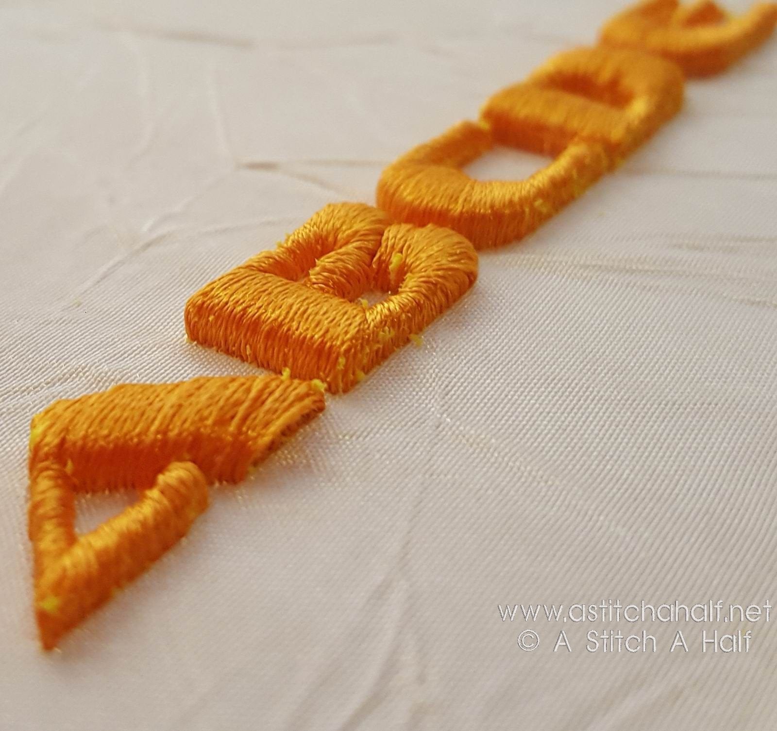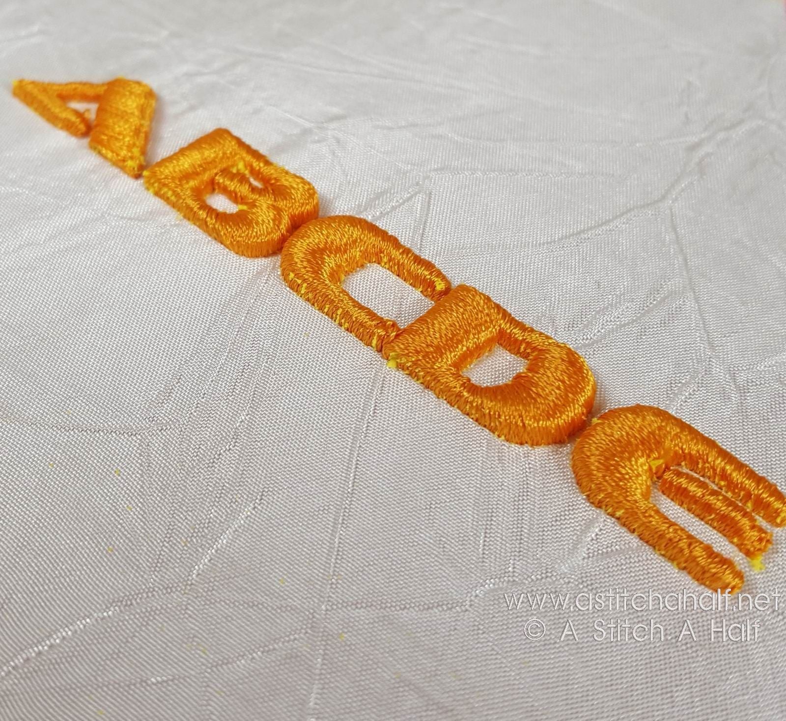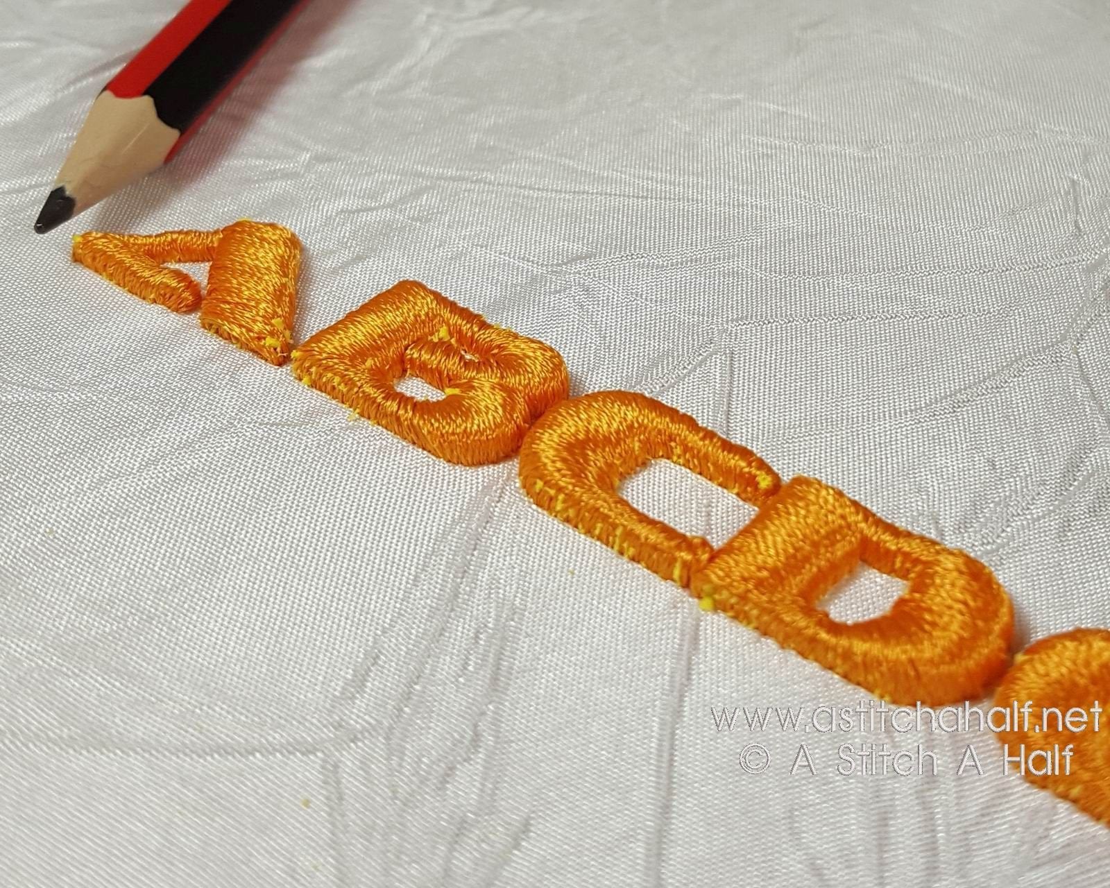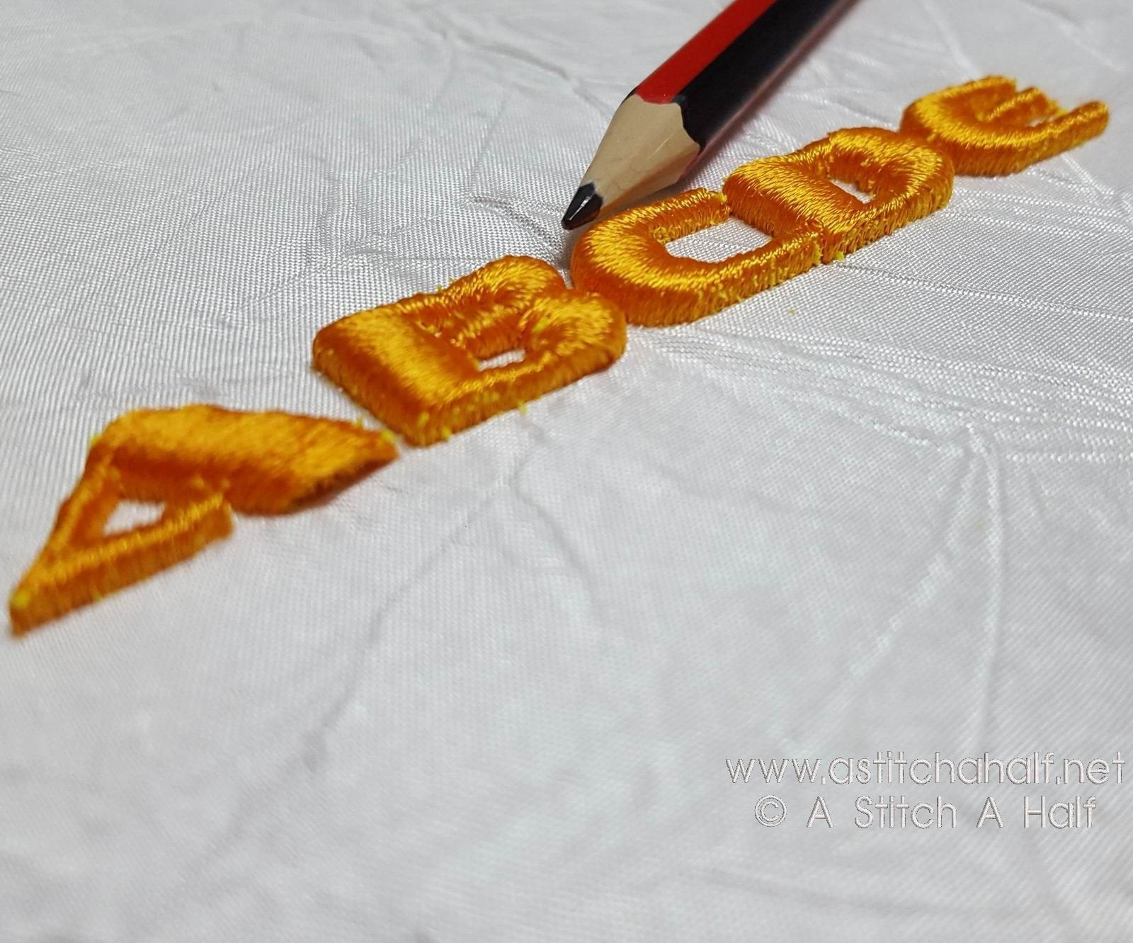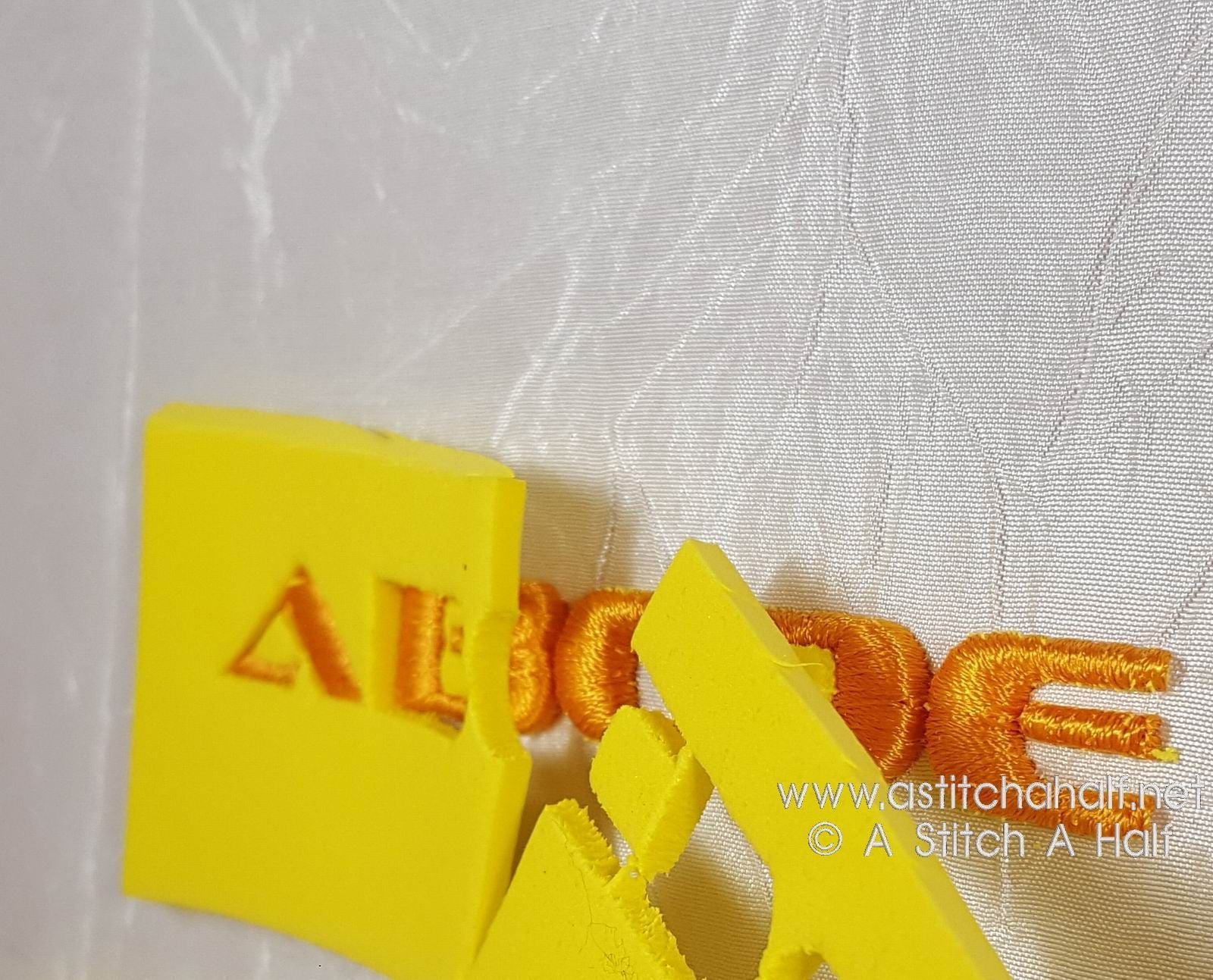 You will be laying down a piece of 3-D foam, and simply embroider the letters as usual. The needle penetrations perforate the foam and allow for the excess to be pulled away upon completion of the embroidery.
