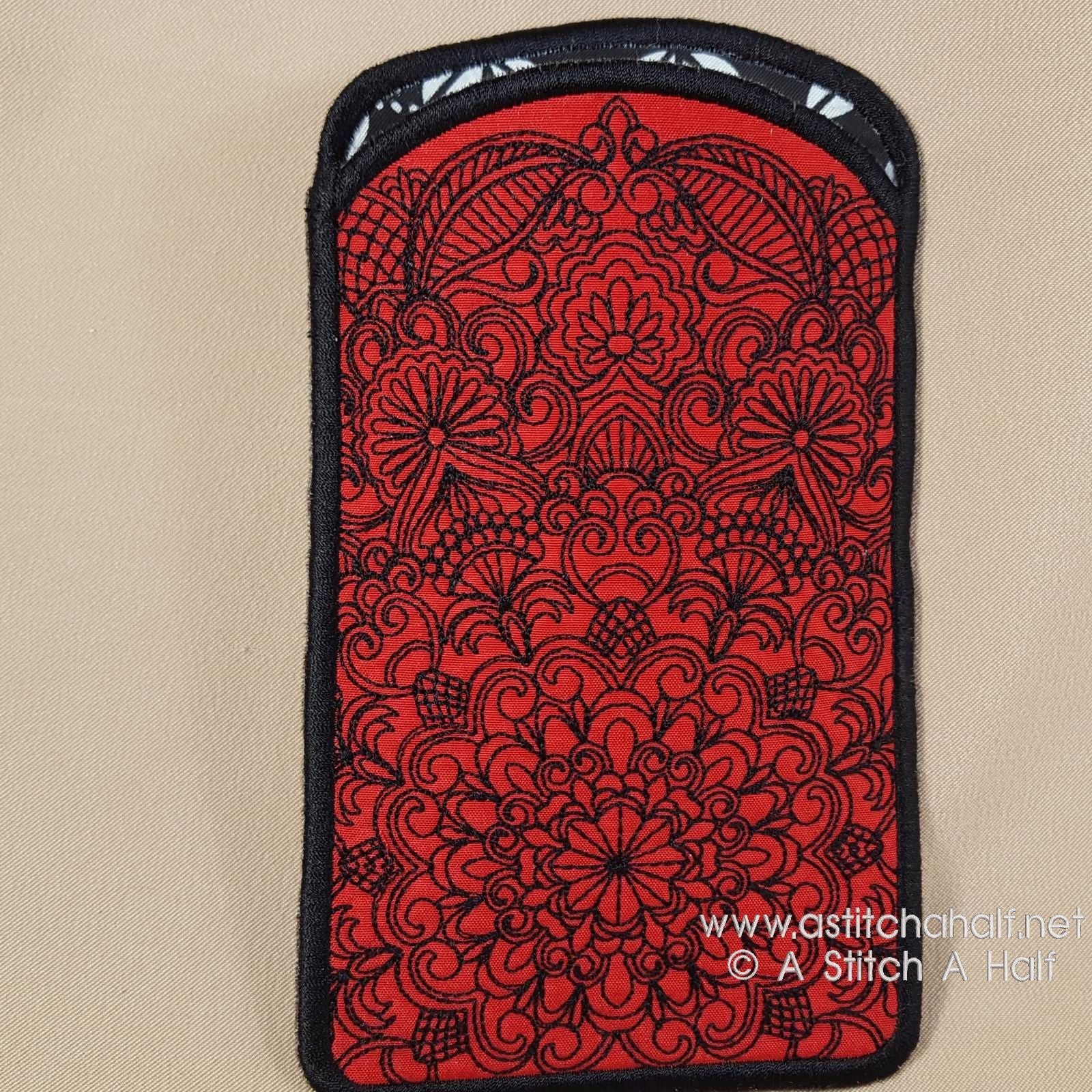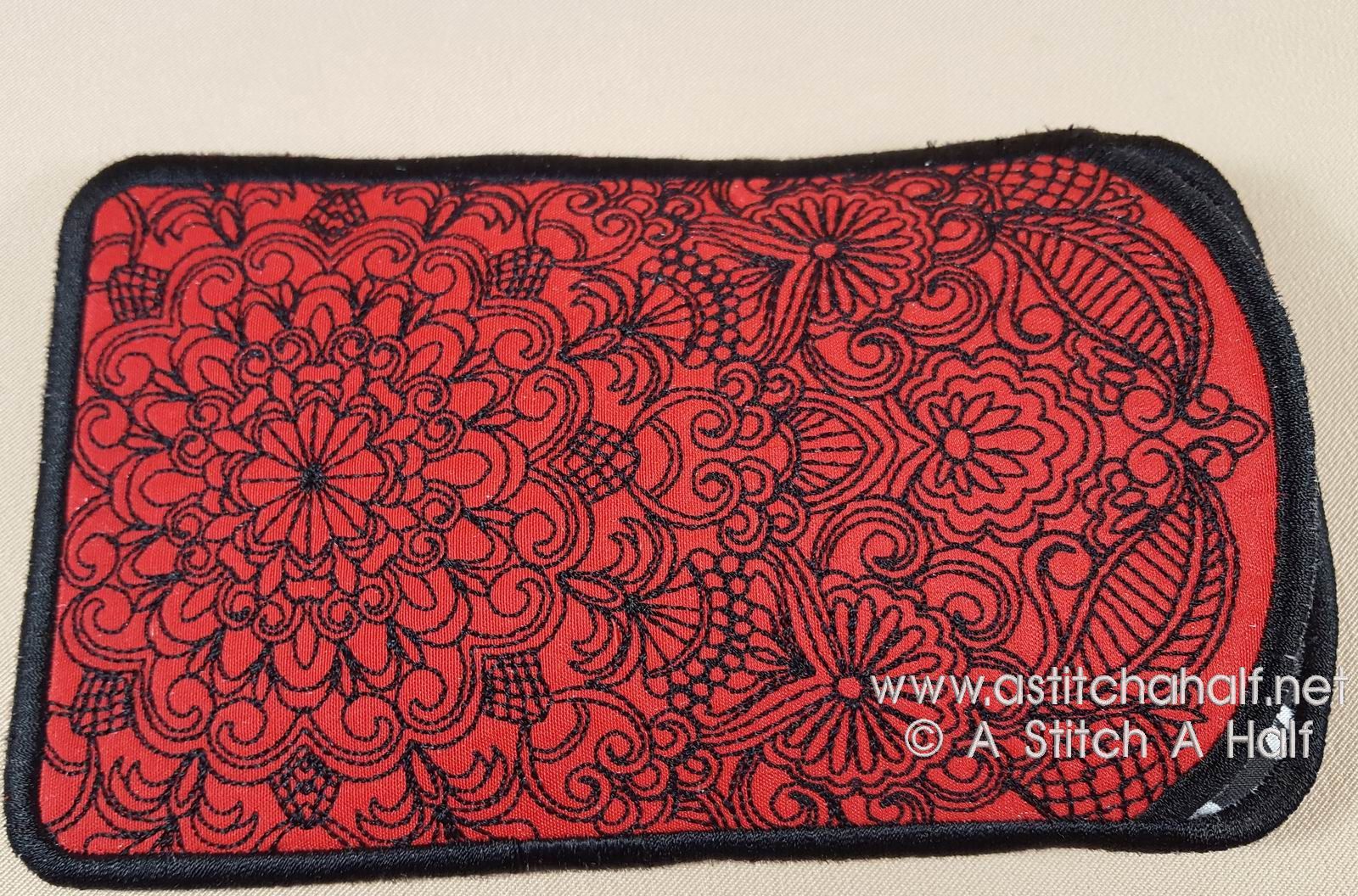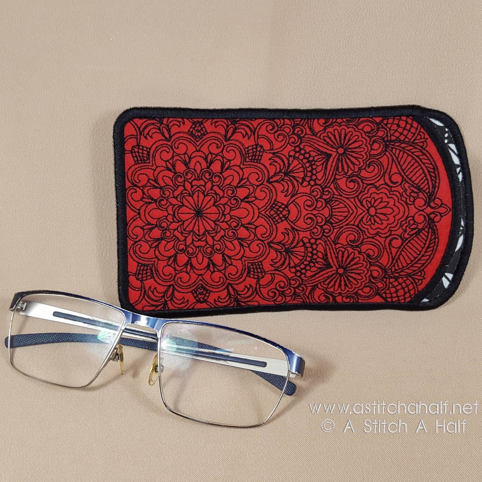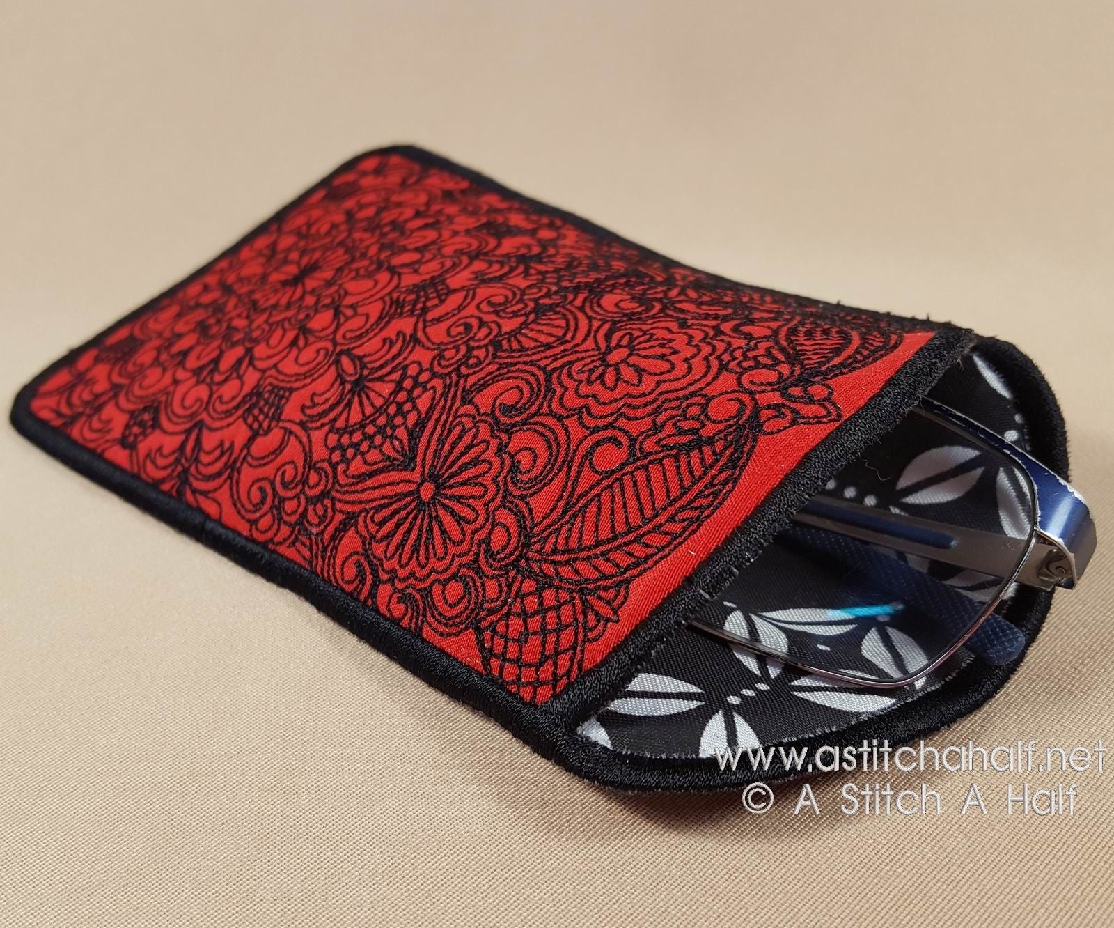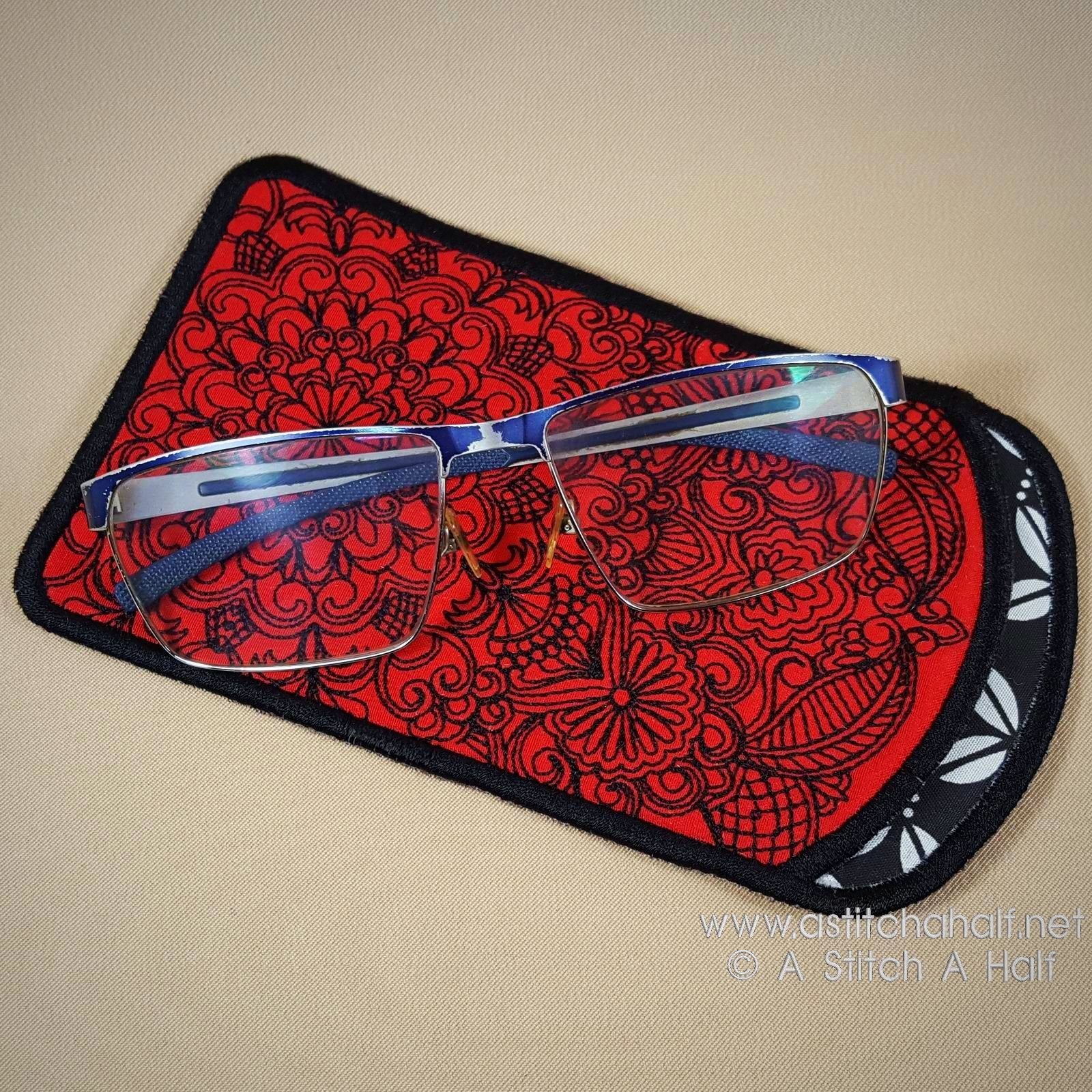 Spectacular Oasis Eyeglasses Case is the ideal, chic eyeglass case that fits easily into your purse, tote bag or just in your pocket. It easily fits the normal sunglasses or eyeglasses. This SUPER EASY fun project is completely done ALL IN THE HOOP! No sewing required!