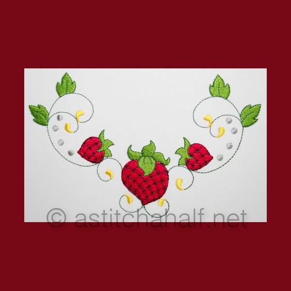 Sweet, juicy, red strawberries with twirls and curls to embellish your kitchen decor, linen or a baby`s onesie. Enjoy this beautiful design!