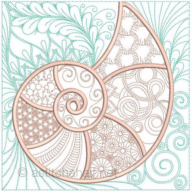 Use these Unique Sea Shell Designs to Embroider a Napkin with the Feather Quilt Design, or Stitch out 1 or All of the Large Quilt Blocks to create a Decorative Pillow Design, Quilt or Wall Art.