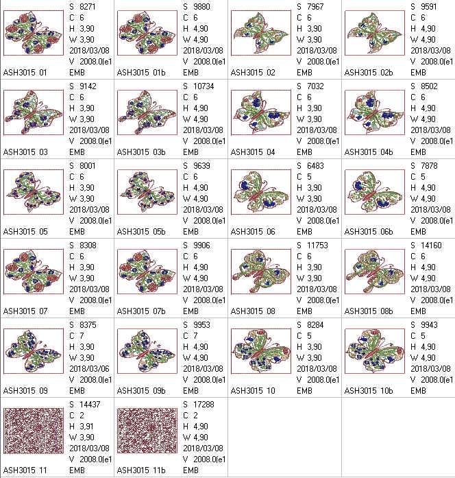 • 4*4 hoop designs (stitch count = 6483 - 14,437)