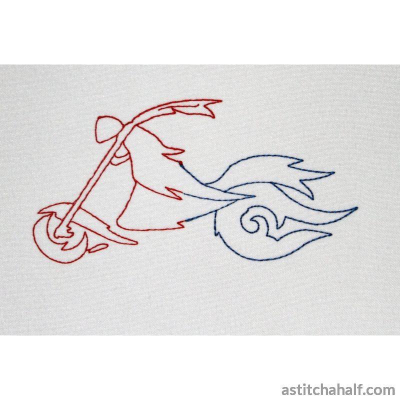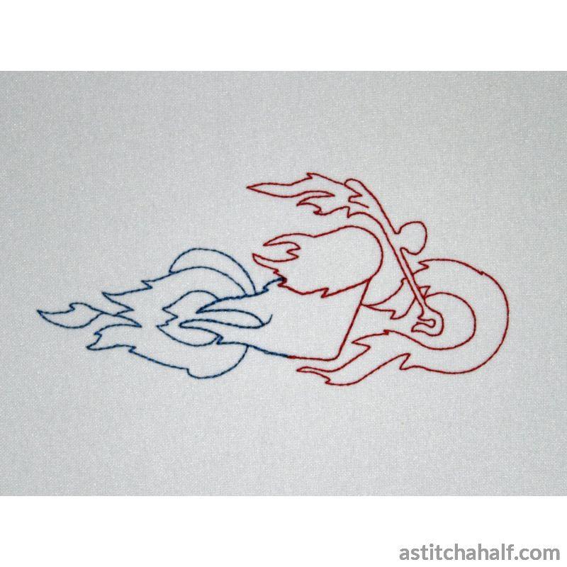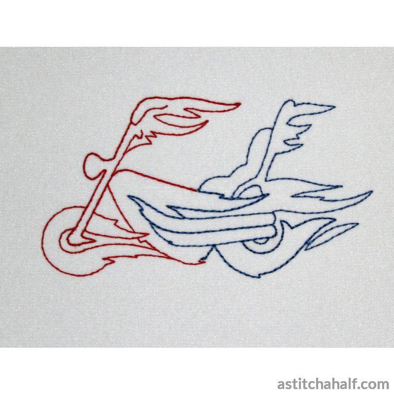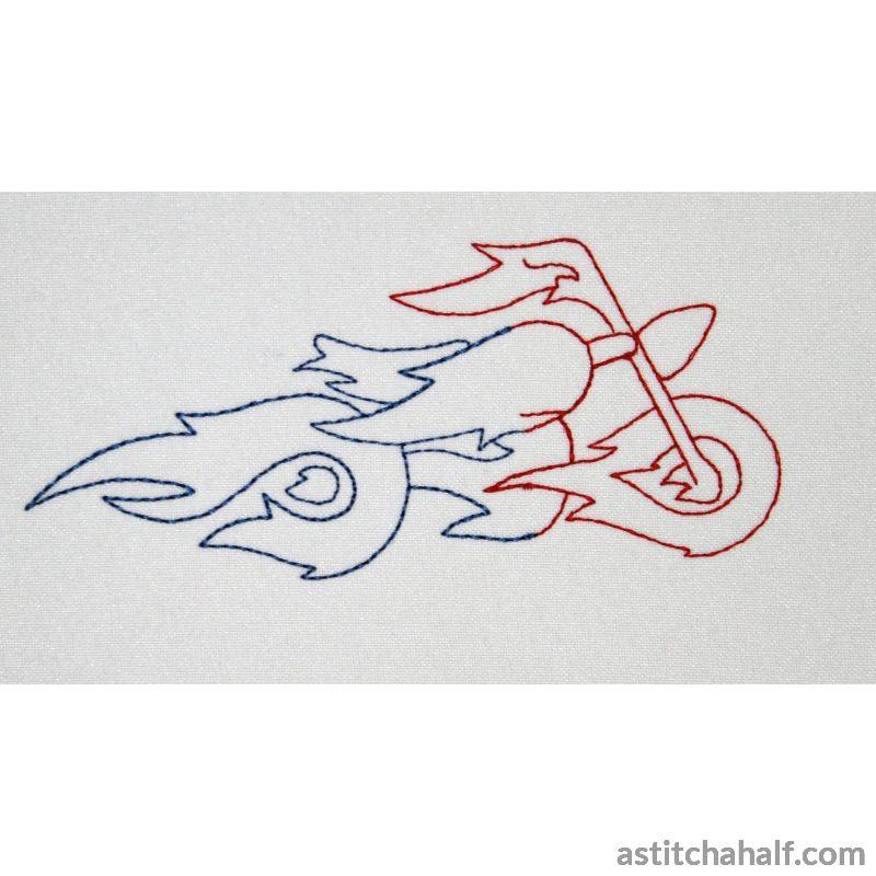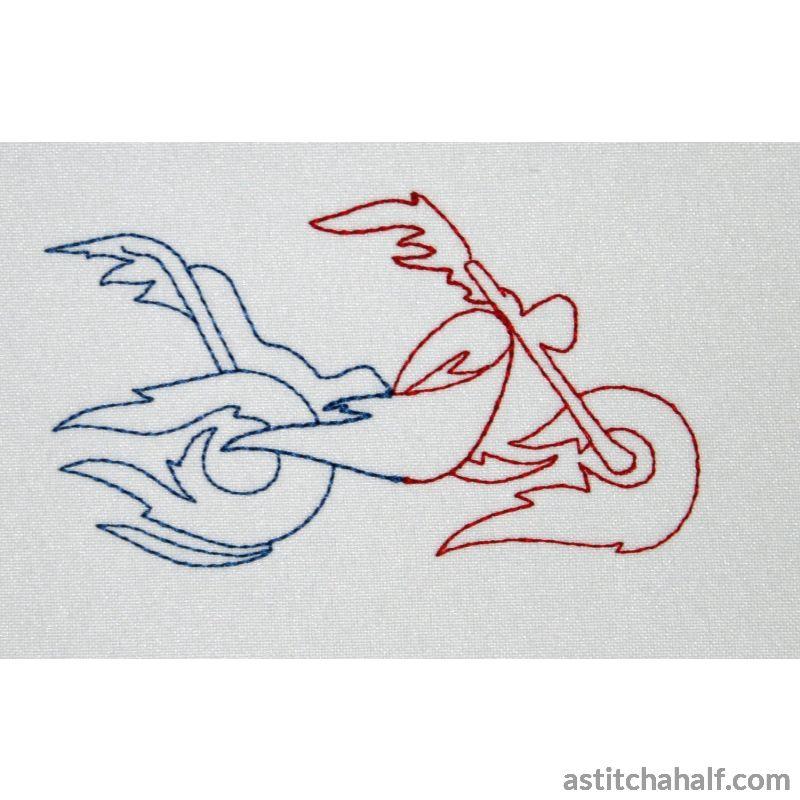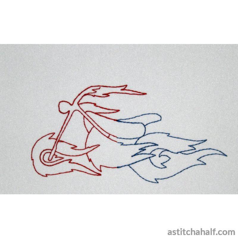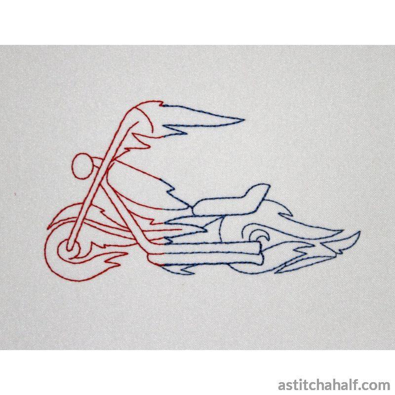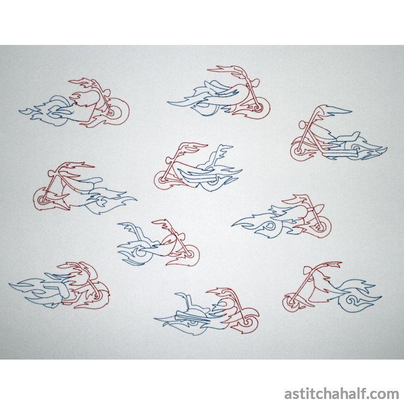 A selection of 10 Thunder Bikes for the brave and the strong of heart. In quick stitch style. Ideal for the "boys' room".