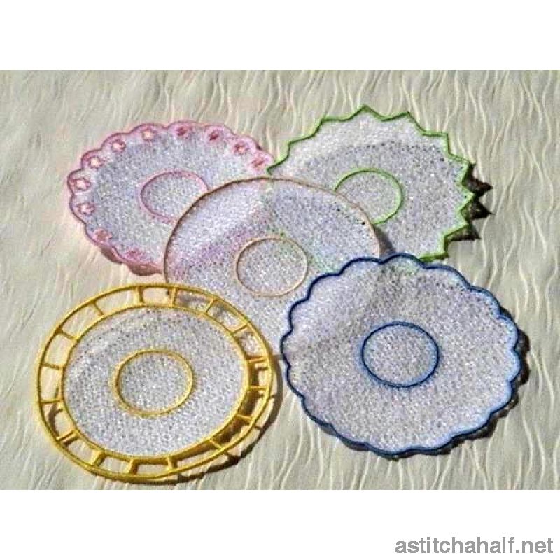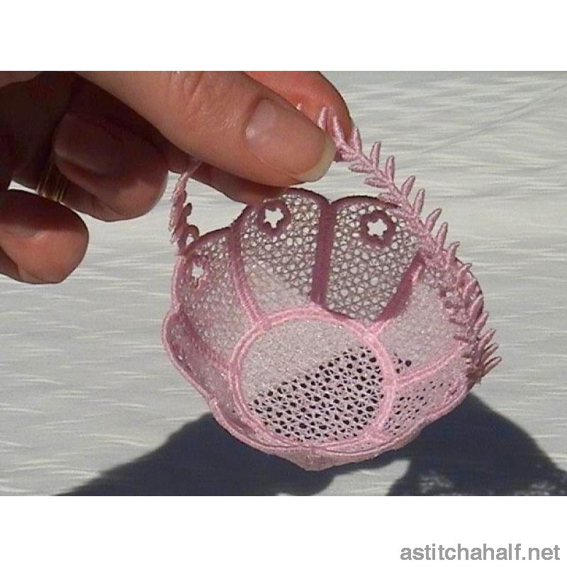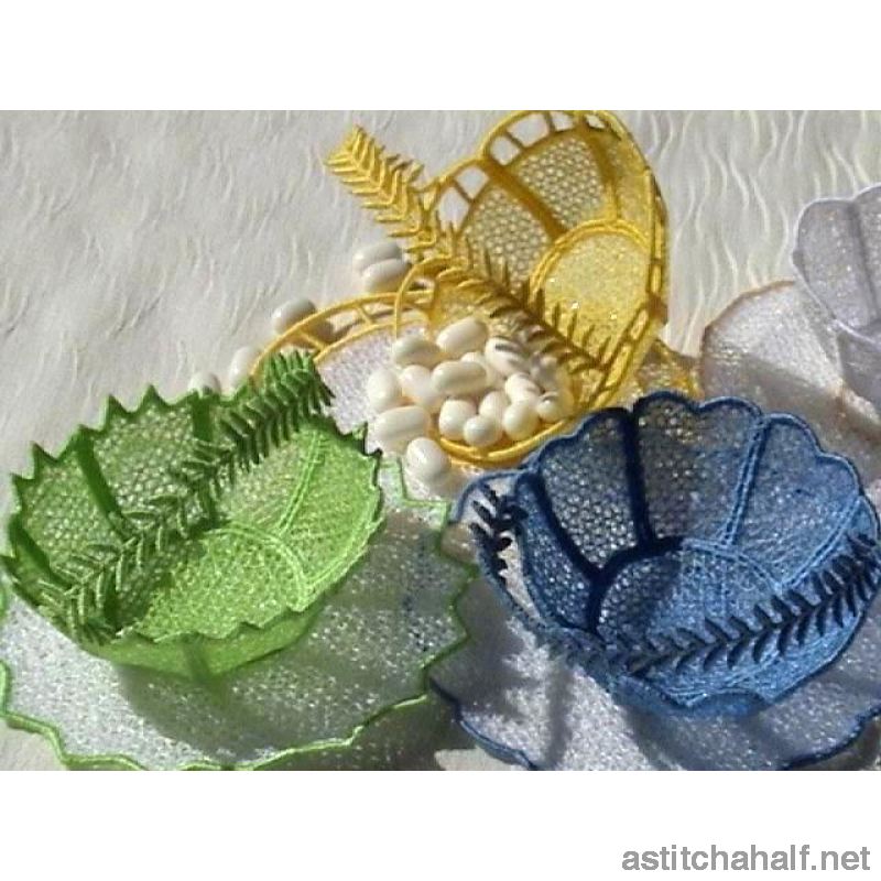 You receive 5 unique freestanding lace mini baskets and mini doilies. Ideal to be used as party favors