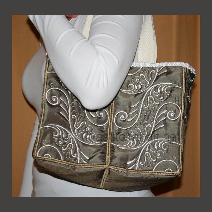 Embroider a beautiful Tote-ly Sunset Bag. This beautiful pattern is delicate and intricate, yet simple to embroider. Change your contrast fabric to create a fresh look.