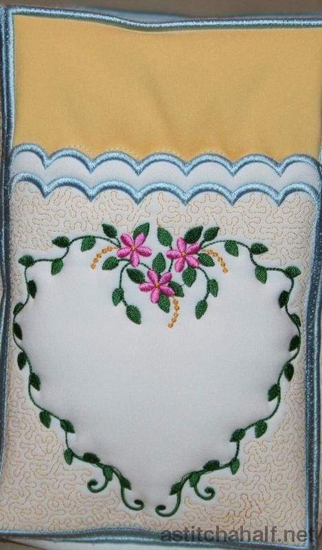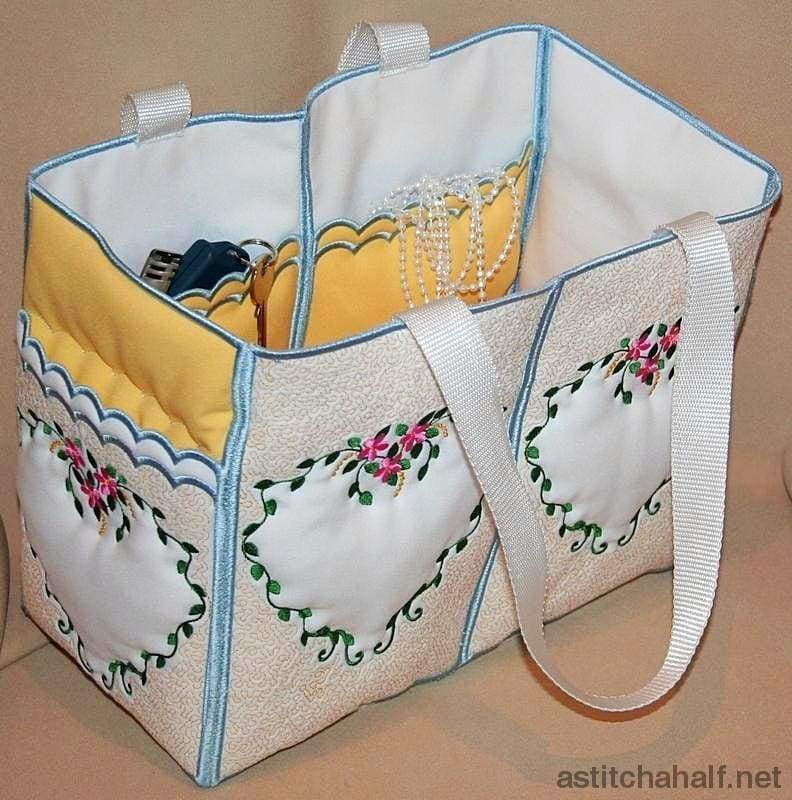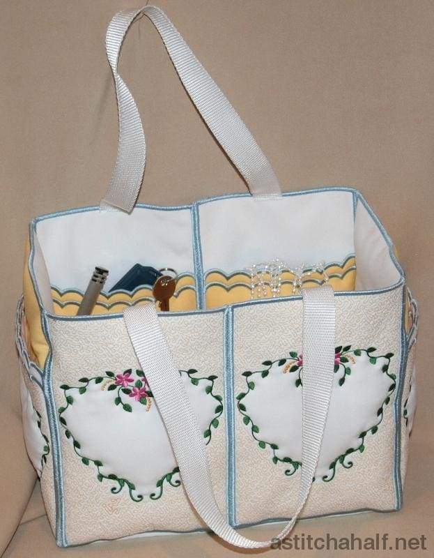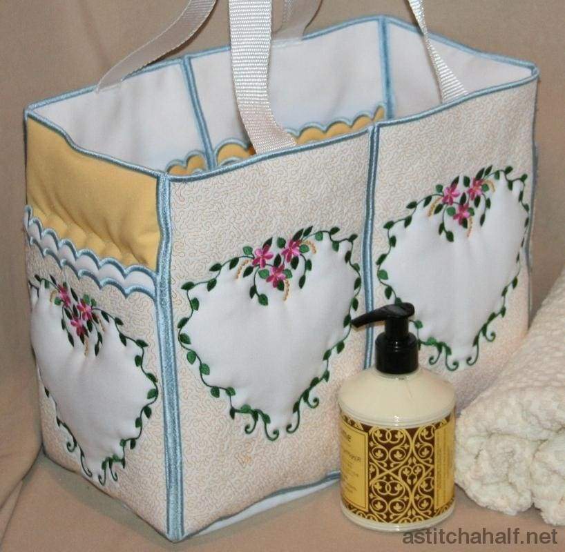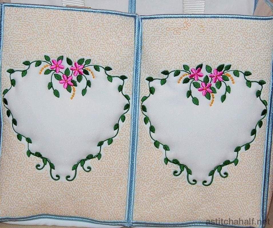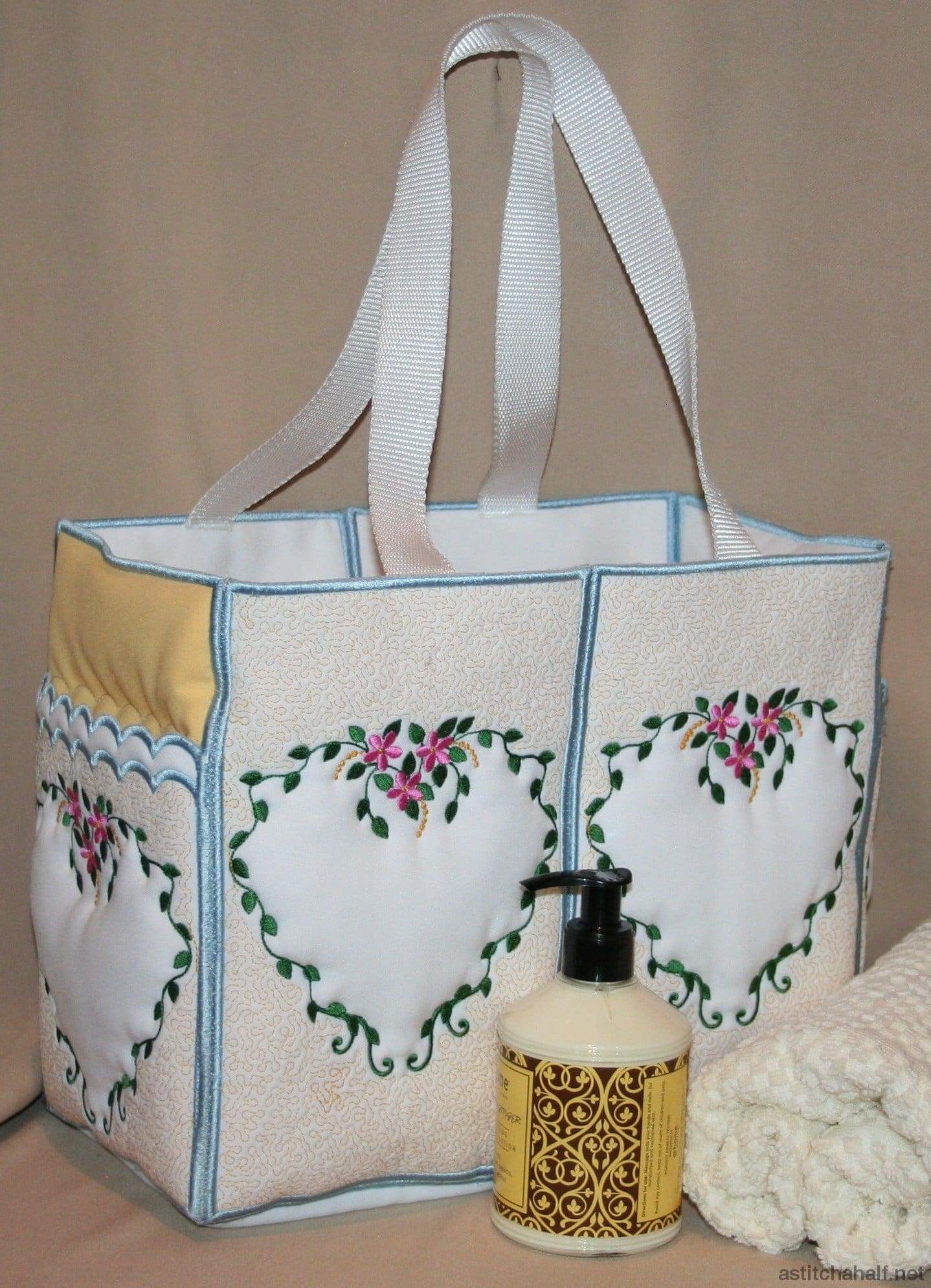 Make your own Tote Bag and enjoy a lot of fun embellish it for yourself or as a gift. An embroidered tote bag with heart in florals and foliage. Pockets make it easy to keep your bag organized and a great gift with matching slippers.