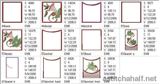 You receive designs for the 5x7 (130mm x 180mm) Hoop