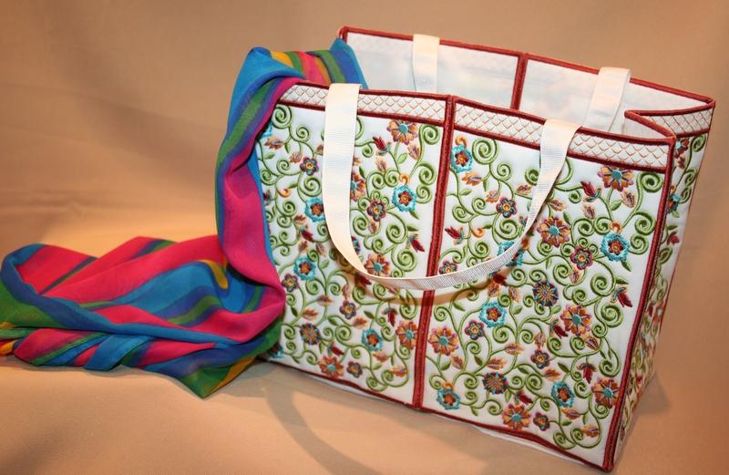 Tote Jacobean Moods, a Tote Bag for all occasions. Tiny colorful curls and swirls adorn this tote to make it special.