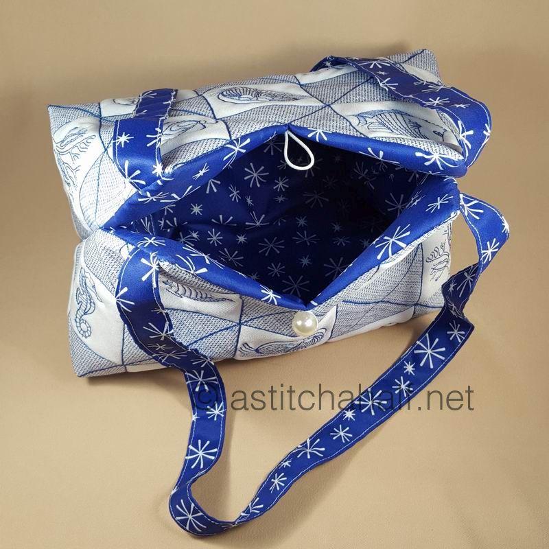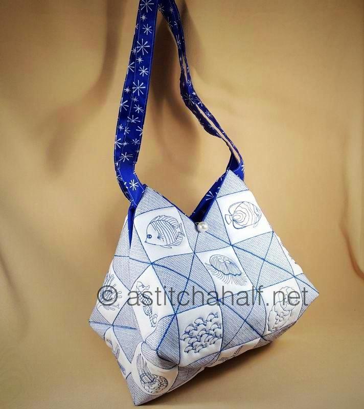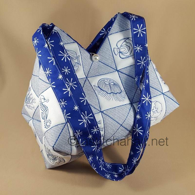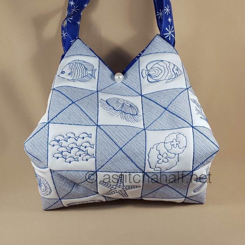 The Tote Bag size will be approx 12" x 13" (4*4 hoop bag) or 14" x 15" (5*5 hoop bag). Use the large Blocks to complete a Beautiful Quilt.