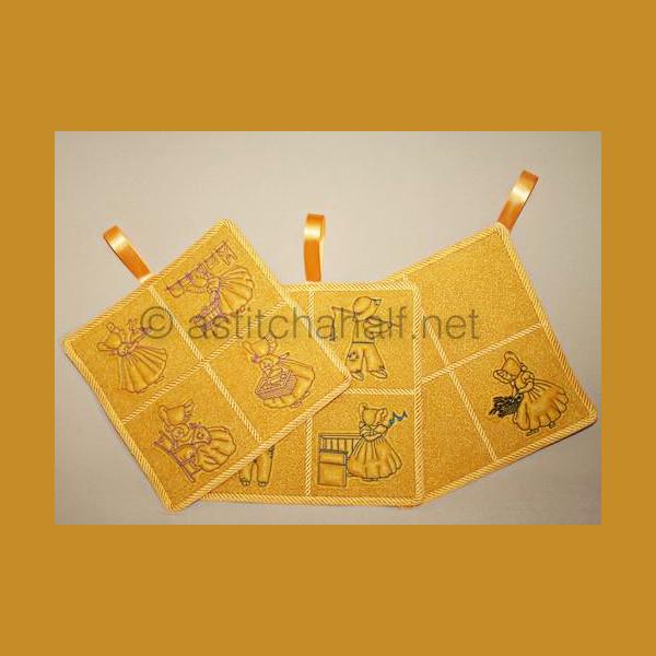 Trapunto designs, also called raised embroidery. Create beautiful projects with these designs. We made tea tray cloths, pot holders, book covers, coasters, placemats etc.