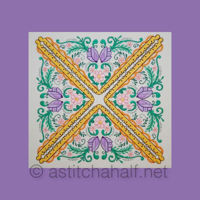 With the Tulips Corner, Centerpiece and Quilt block you will have endless options in creating the most beautiful embroidered projects for your home, family and friends!