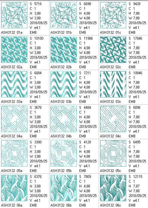 8*8 hoop designs x 11 (stitch count = 6495 - 17,846)