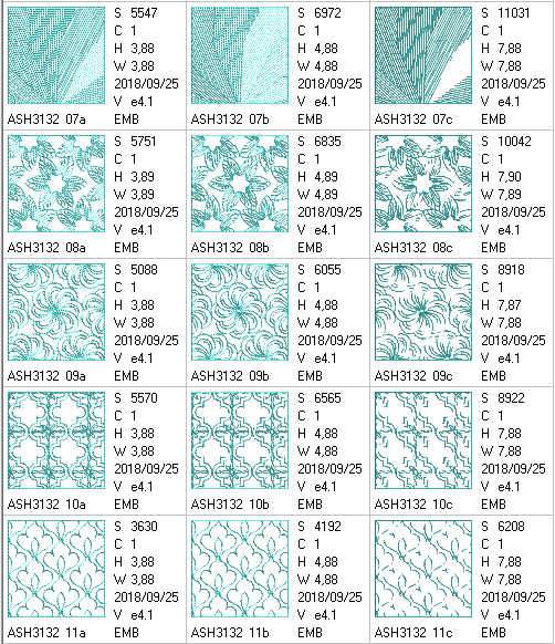 5*5 hoop designs x 11 (stitch count = 4120 - 11,986)
