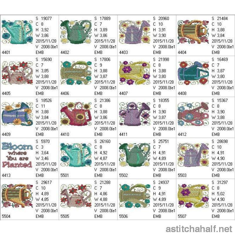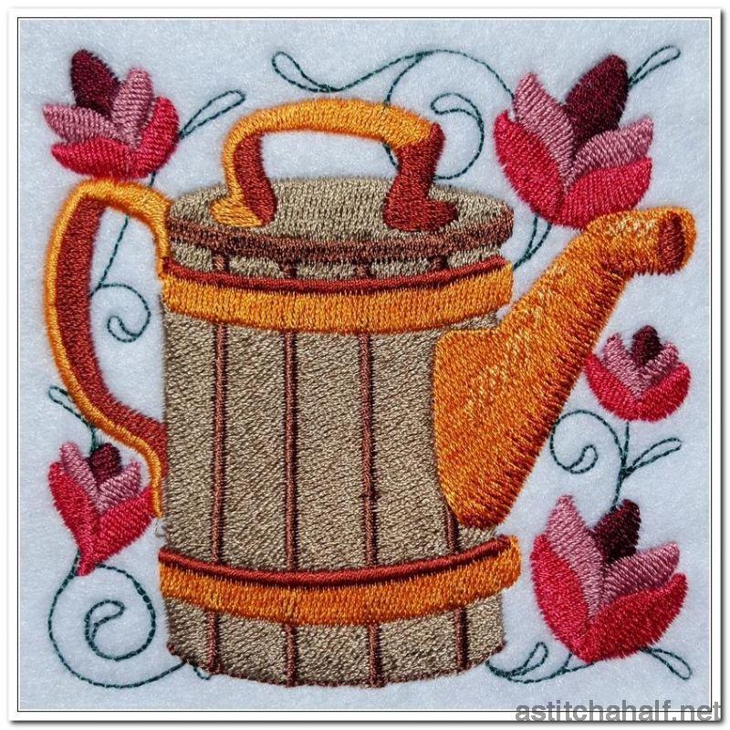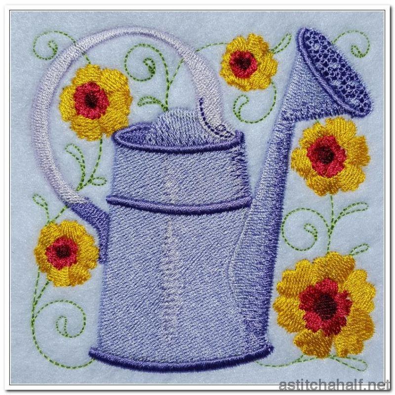 Water Wise Wonders is a combo of colorful, feel-good, garden-lover embroidery designs where your favorite watering cans feature prominently on all your projects. Bring that refreshing spring and summer into your life at any time of year. You receive 12 unique designs (26 designs in total)
