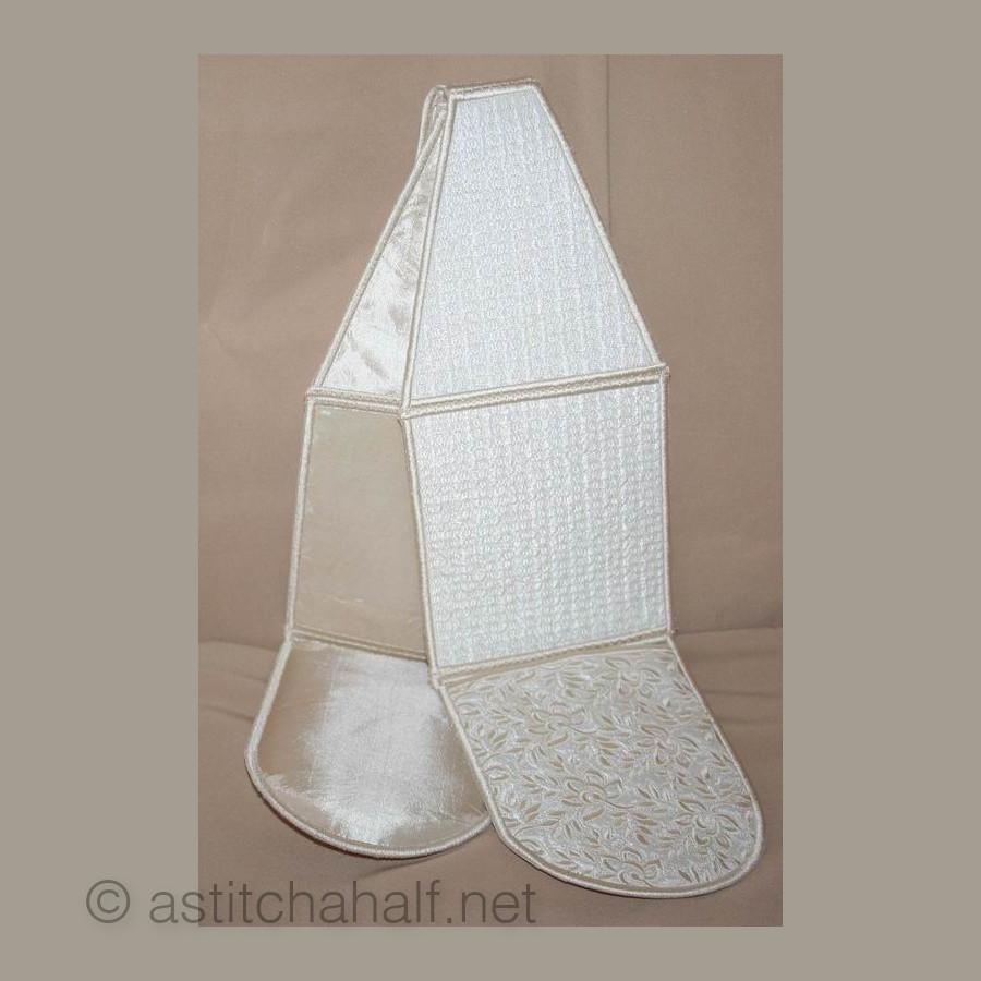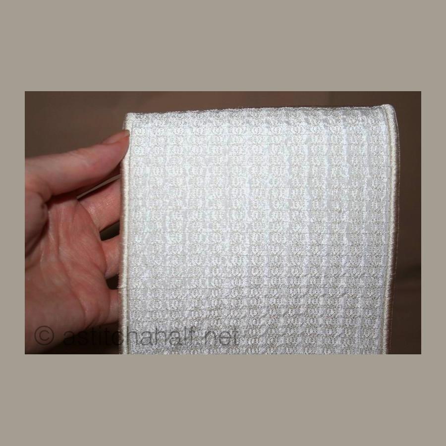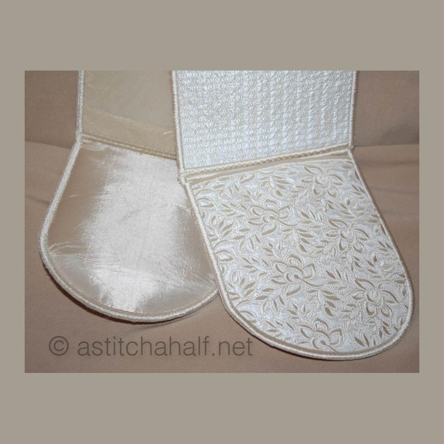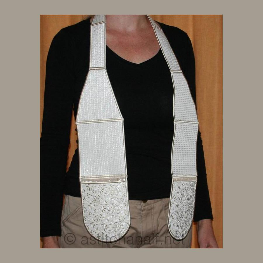 The Whispers in White Pocket Scarf and Mitts can be used for, yip you guessed! You can use it as a set of Oven Mitts or you can use it to drape around your neck like a scarf with handy pockets for you scissors and more. Perfect for the sewing room or the kitchen. You get easy-to-follow instructions included and make your project in 2 sizes.