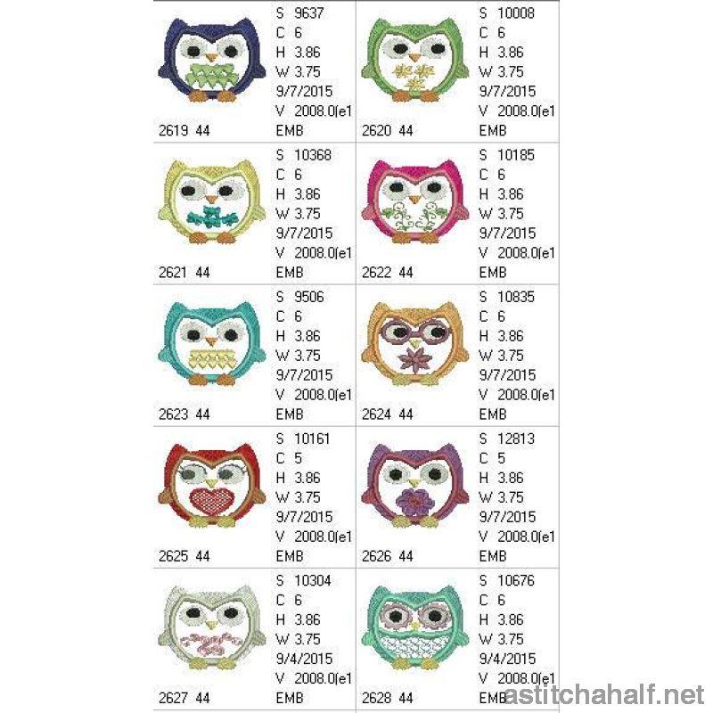 "Whoo Love Owls Combo" are quick to stitch to table linens, tea towels, linens and so much more. You get 10 X 4*4 owl designs in this Combo.