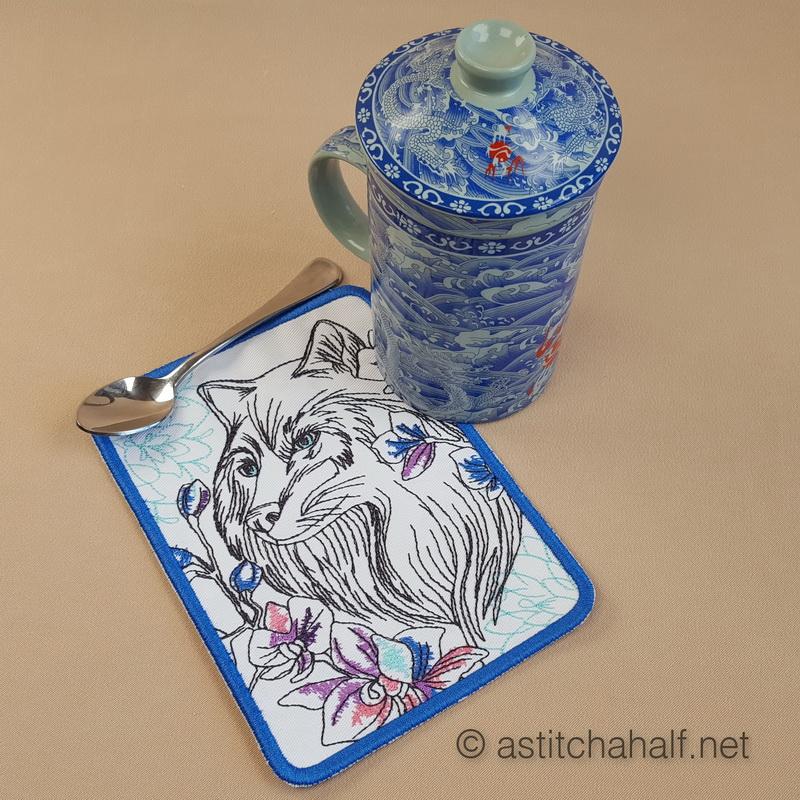 Wild Winter Mug Rug and Coaster set is smaller than a place mat but ideal for your tea and a snack. The Wolf and the Flowers will make a stunning project.