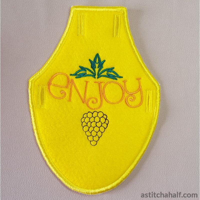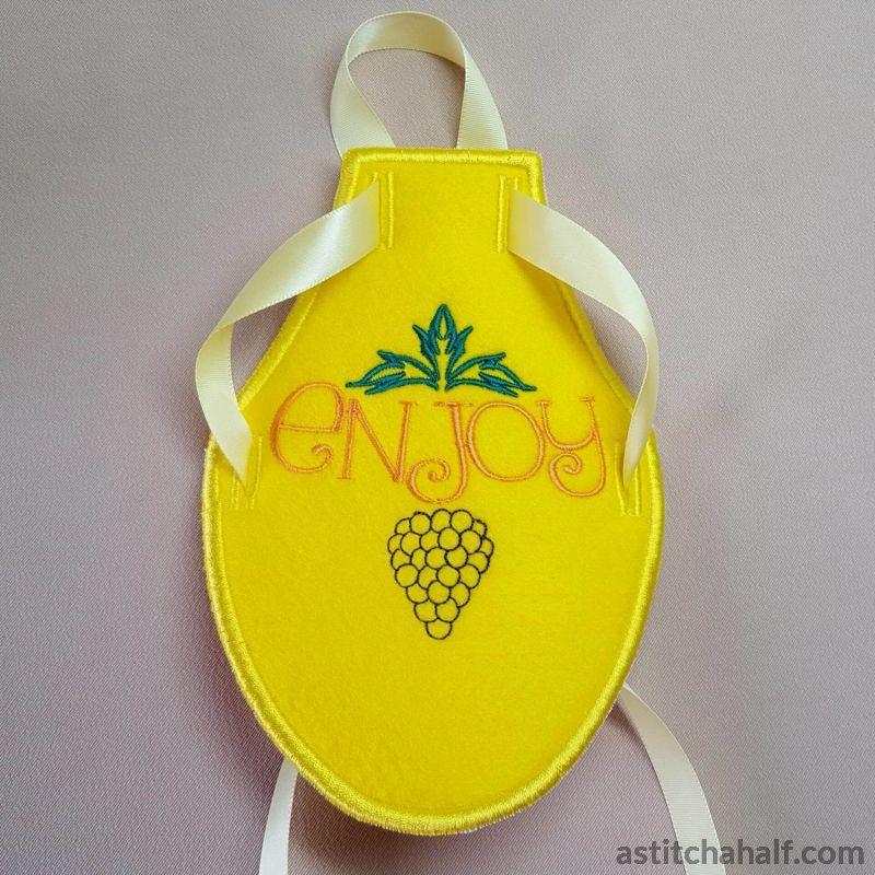 A special gift pack for a bottle of wine. You will be remembered long after the wine is finished. No sewing is required. An All In The Hoop Project.