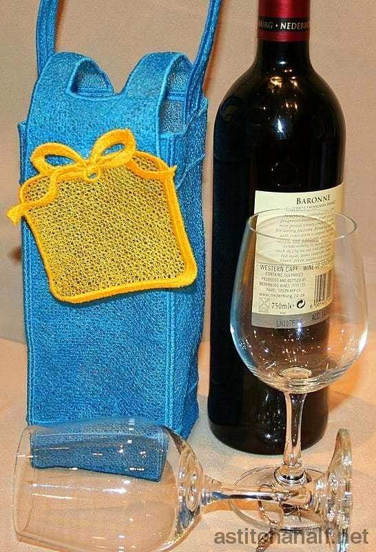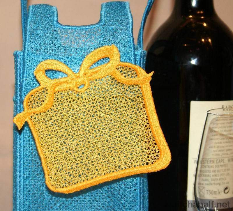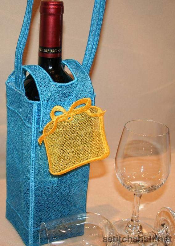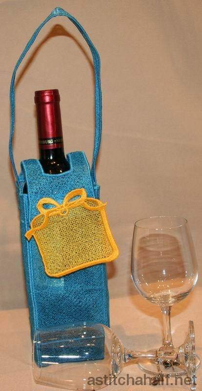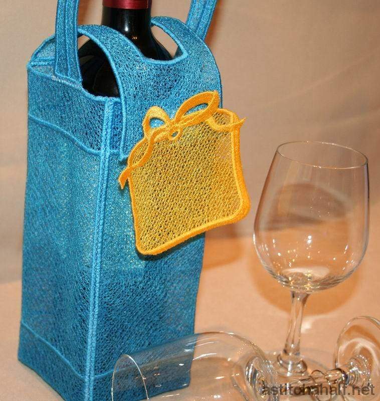 A special gift pack for a bottle of wine. You will be remembered long after the wine is finished. This is a freestanding lace project.