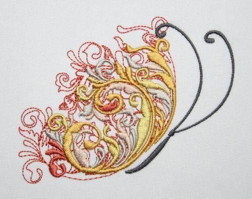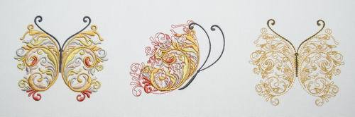 In Wings of Versailles 05 Amber you receive 6 designs to decorate a wall hanging, quilt or table cloth.
