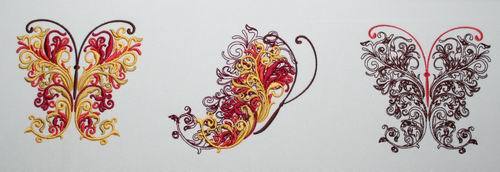 In Wings of Versailles 07 Clementine you shall receive 6 designs to decorate a wall hanging, quilt or table cloth.