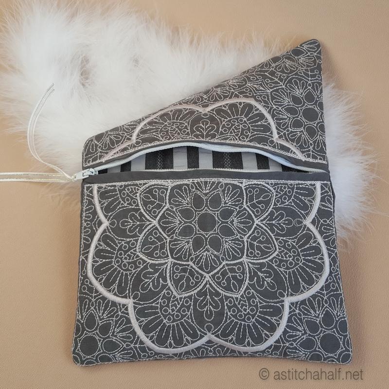 Stitch this All-In-The-Hoop, Very Popular and spacious Fold-Over Clutch. You can create this Clutch Purse in four sizes.