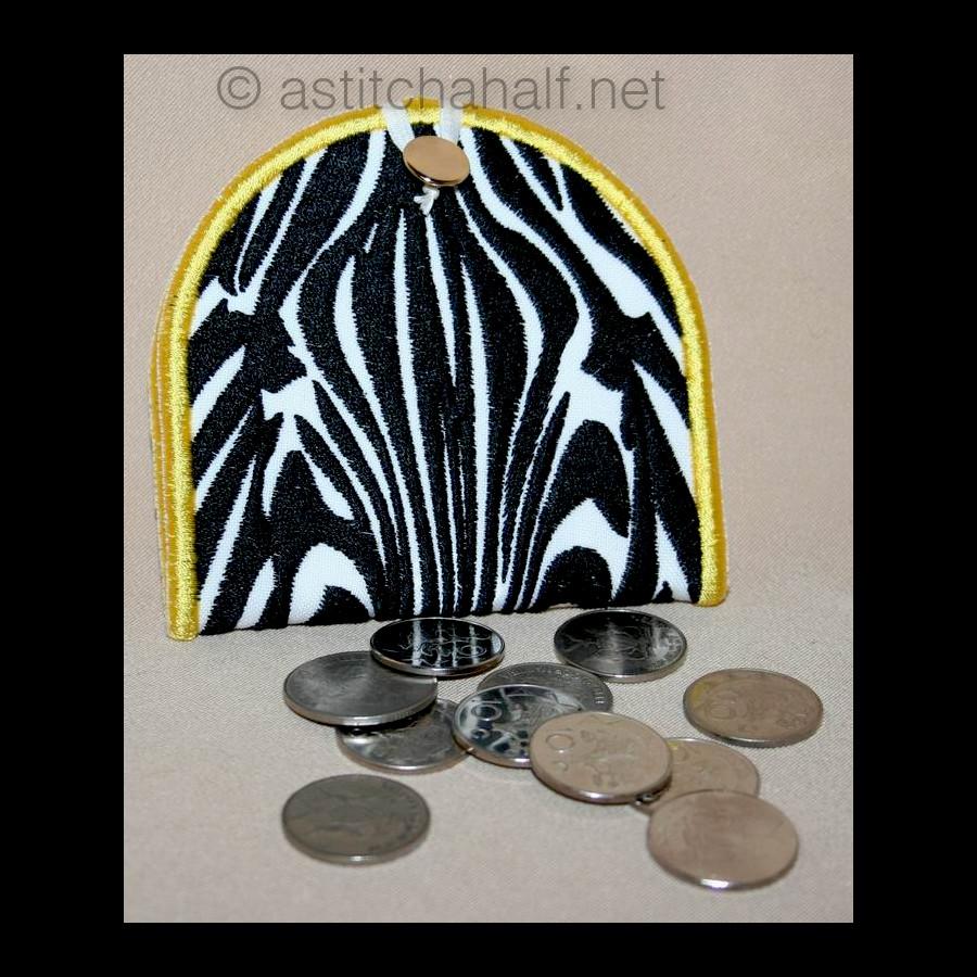 Make this beautiful Zebra Coin Pouch. The perfect way to make sure your coins do not fall out. You can complete each panel in the hoop. Then stitch panels together for this beautiful Coin Pouch. Complete easy to follow instructions included.